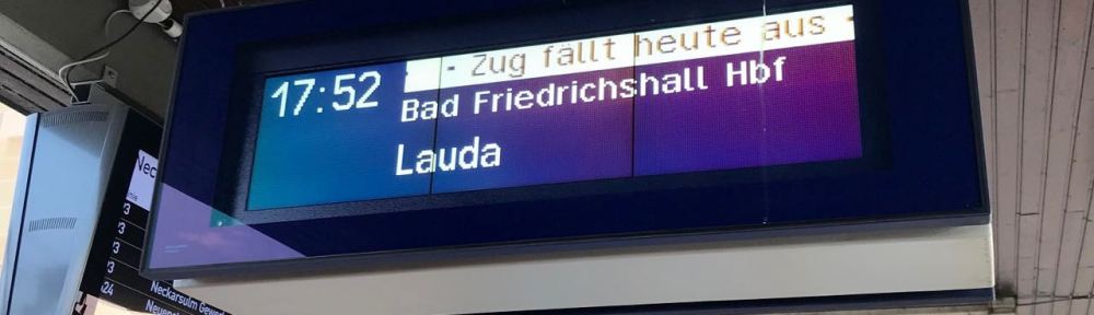 Konsequenter Weise wird heute schon der Re 8 um 6.44 Uhr Abfahrt in Möckmühl schon jetzt mit „Fährt fällt aus“ angekündigt. Der Grund dafür sind „Verzögerungen im Betriebsablauf“, die offenbar heute Abend schon absehbar sind. Ein Schelm wer Böses dabei denkt.